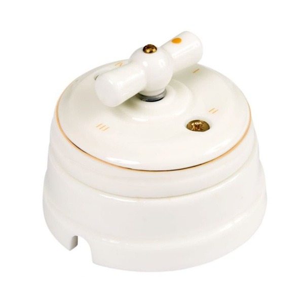 Ретро выключатель GE70401 изготовлен из настоящего петербургского фарфора. Изделие имеет поворотный механизм на 2-4 положения (1-2 клавишный) отлично подходит для управления одной или двумя группами освещения. Можно комбинировать с металлическими ручками. Выключатель GE70401-01 вместе с дополнительными элементами ретро электрики, которая есть на нашем сайте, поможет вам создать стильный, интересный и неповторимый интерьер.