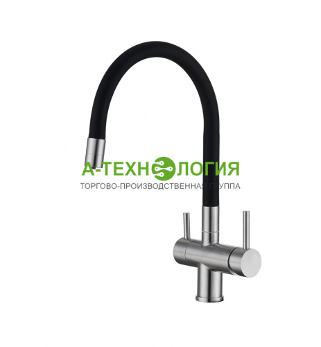 Смеситель сделан из нержавеющей стали. Лейка из силиконового шланга. Смеситель обладает популярными размерами.