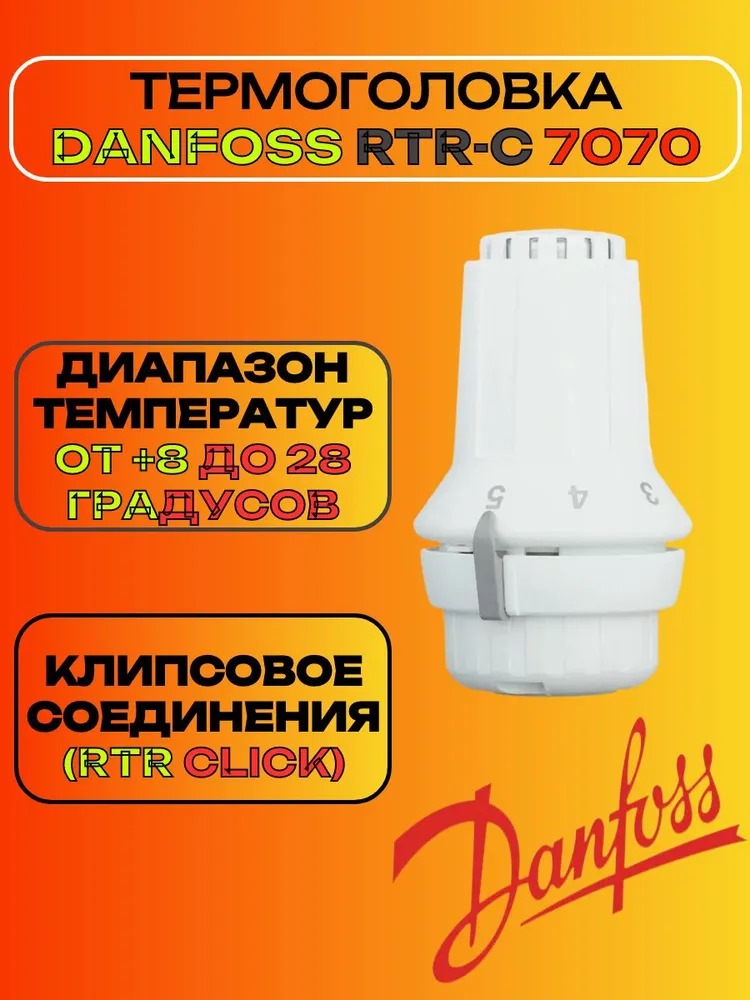 Термоголовка Danfoss RTR-C предназначена для установки на радиаторные краны Danfoss типа RTR-N (RA-N), RTR-G (RA-G) 10/15/20/25 по средством клипсового соединения.